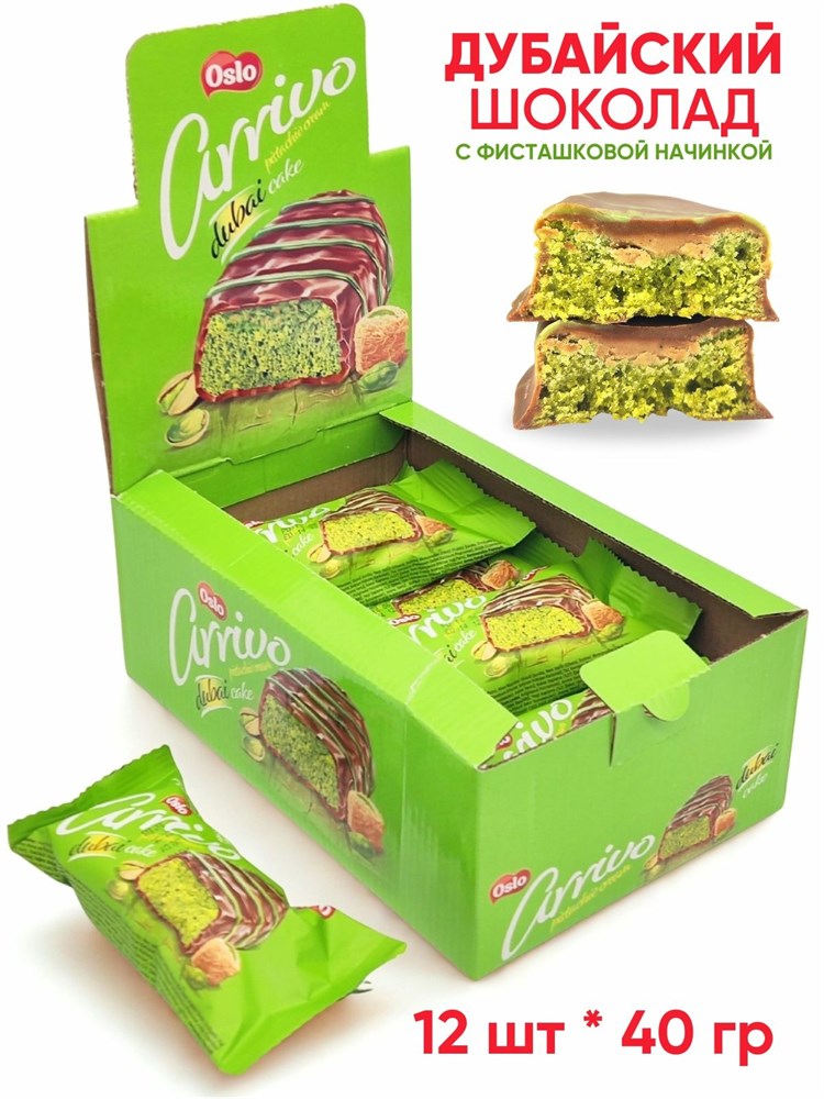 Батончик бисквитный Arrivo с фисташковой начинкой и кремом в глазури (BS0001) 40 гр*12 бл*12 шт