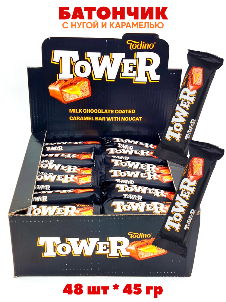 Батончик шоколадный TOWER с карамелью и нугой (AY993199) 45 гр*6 бл*48 шт