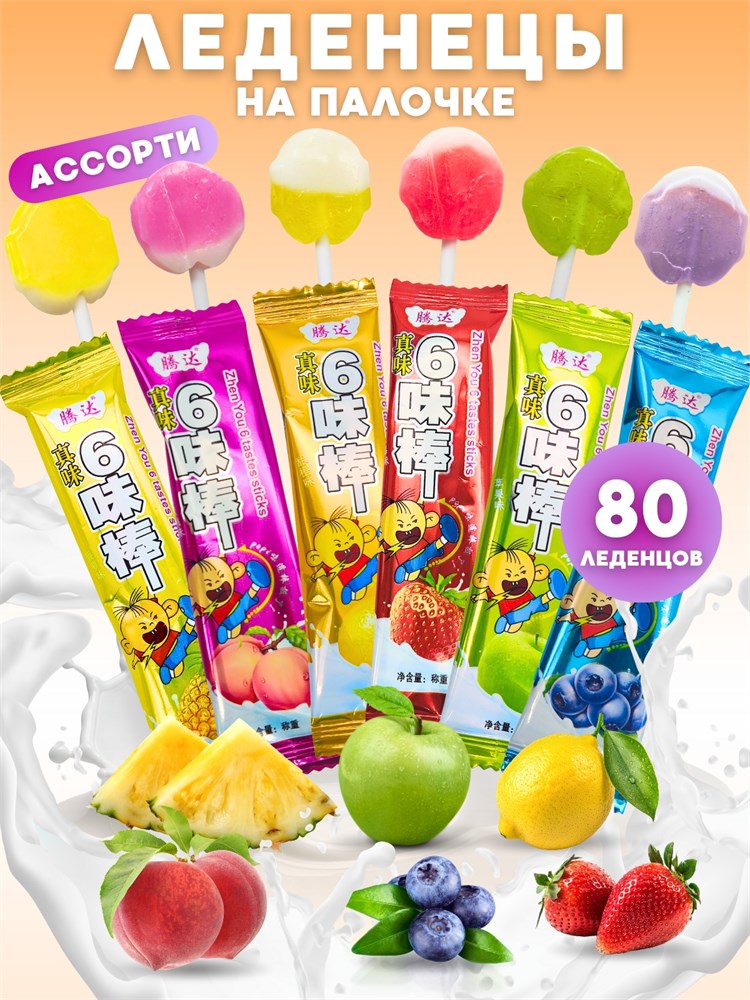 Чупа Чупс 6 вкусов Zhenwei (0131) 3 гр*1 кор х 30 бл х 64 шт