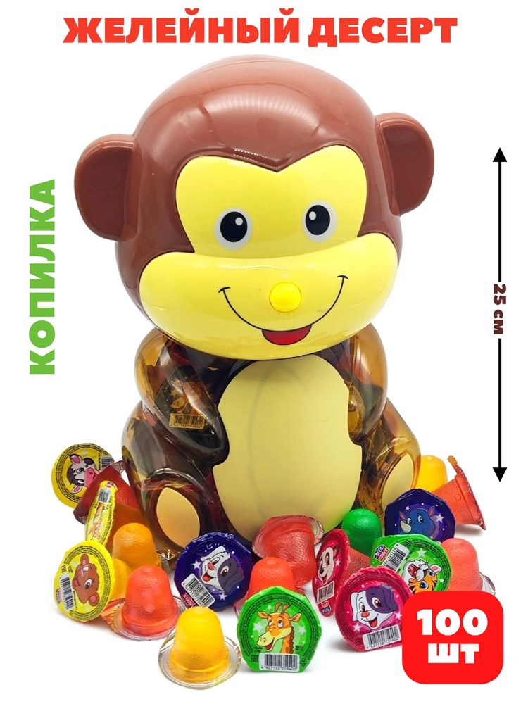 Десерт желейный в копилке (с изображением Обезьяны) ассорти (Канди Клаб)(JEL046) 13гр*6 банок*100 шт