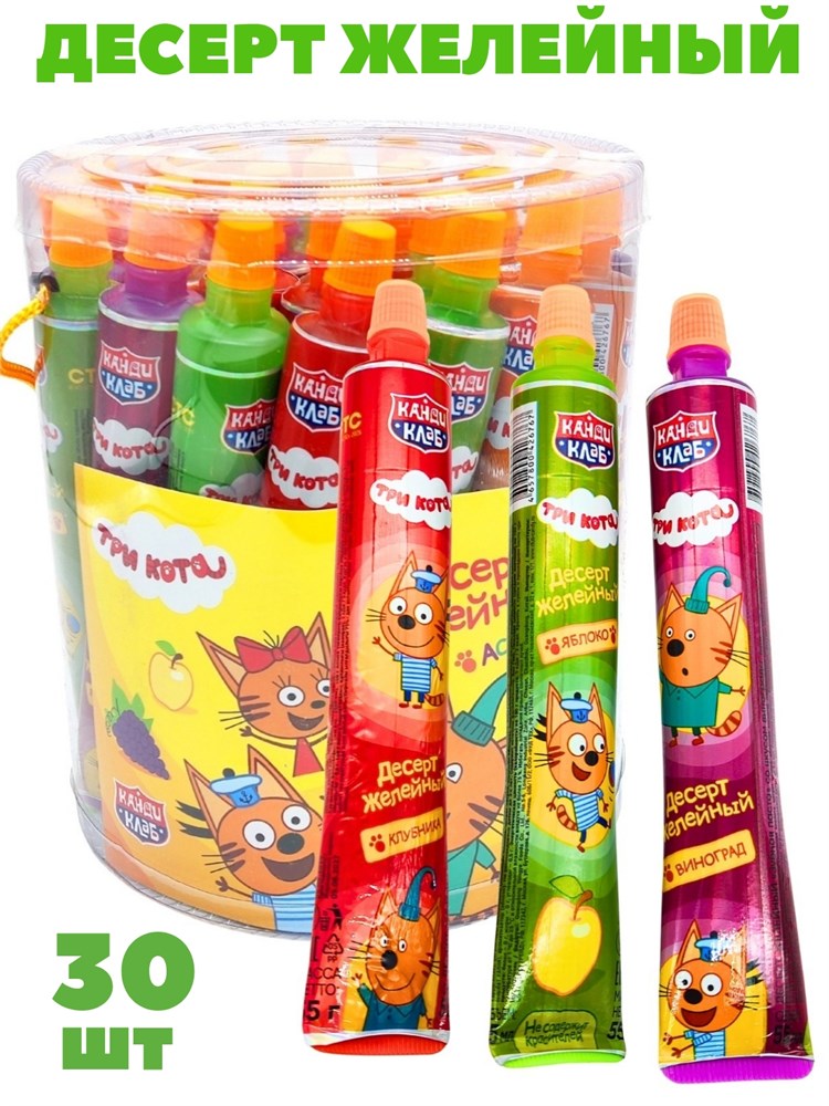 Десерт желейный Зубная паста Три кота ассорти (Канди Клаб) (JEL115) 55 мл*8 банок*30 шт