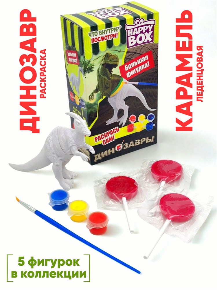 HAPPY BOX Раскрашиваемые динозавры Фигурка + карамель в коробке (HB-12-8) 30 гр*4 бл*10 шт