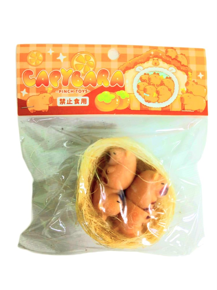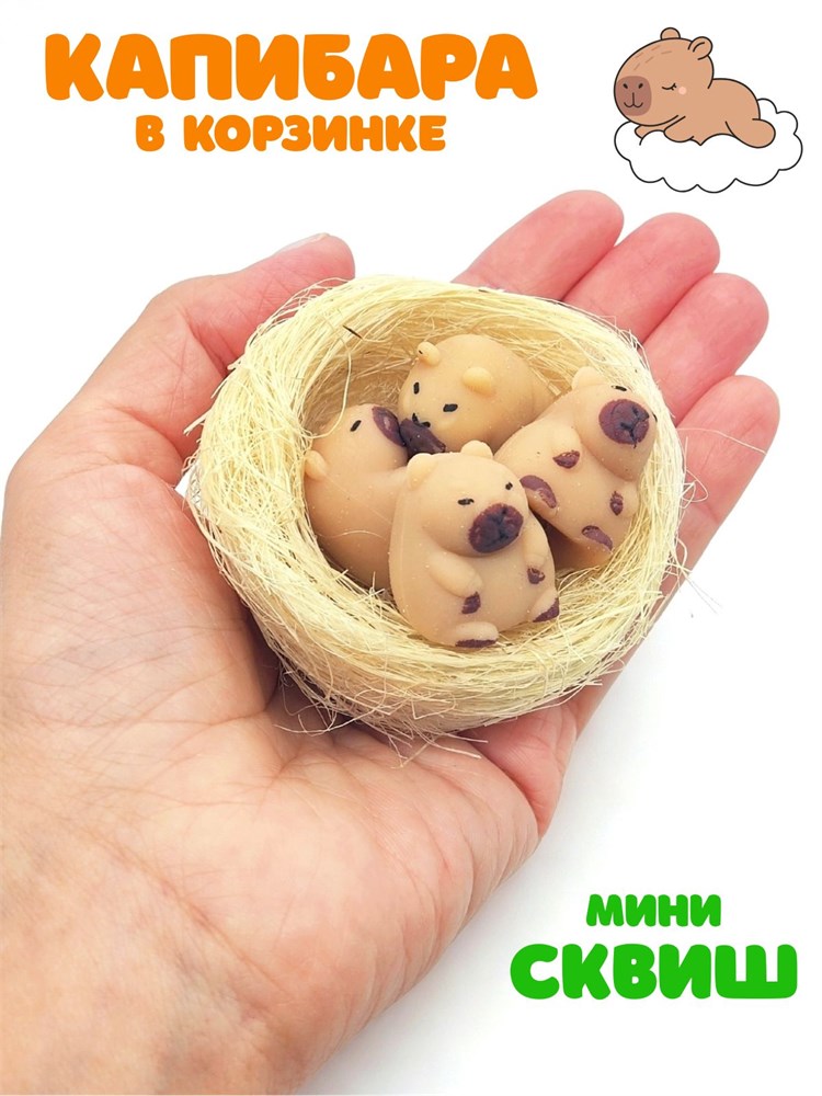 Игрушка - антистресс Капибара в корзине в пакете 7 см 1 блок х 12 шт 00-6685