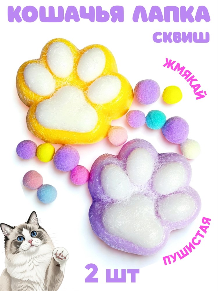 Игрушка - антистресс Лапки 2 шт мохнатые с шариками в пакете 1 упак х 24 шт 202047140