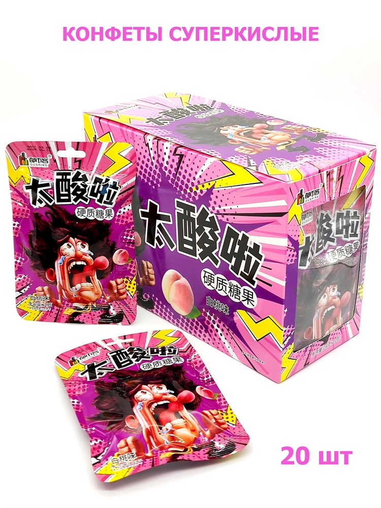 Карамель Dushike супер кислая Персик (9851) 24 гр*1 кор х 12 бл х 20 шт