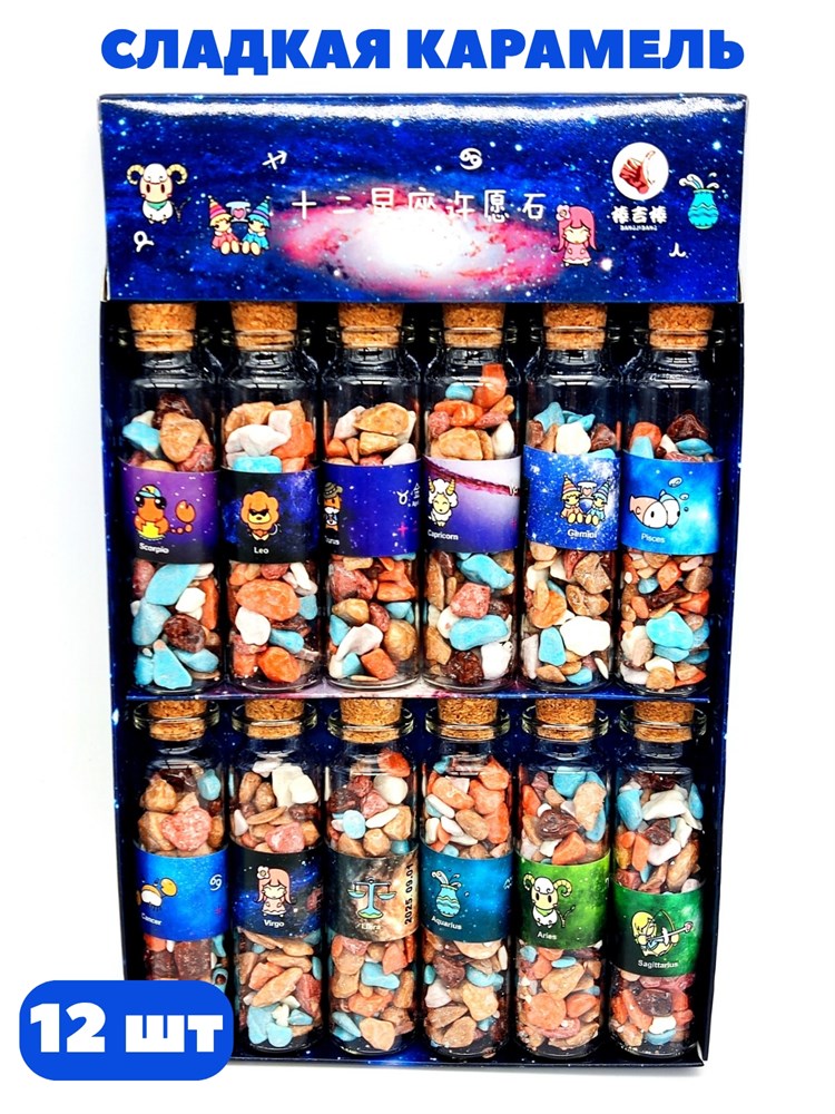 Карамель сладкая Цветные камешки в бутылочке стекло (60107) 12 гр*24 бл*12 шт