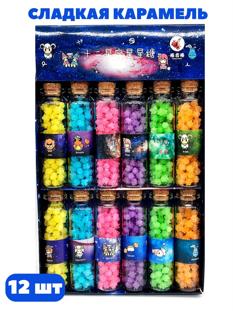 Карамель сладкая Знаки зодиака в бутылочке стекло (60091) 12 гр*24 бл*12 шт