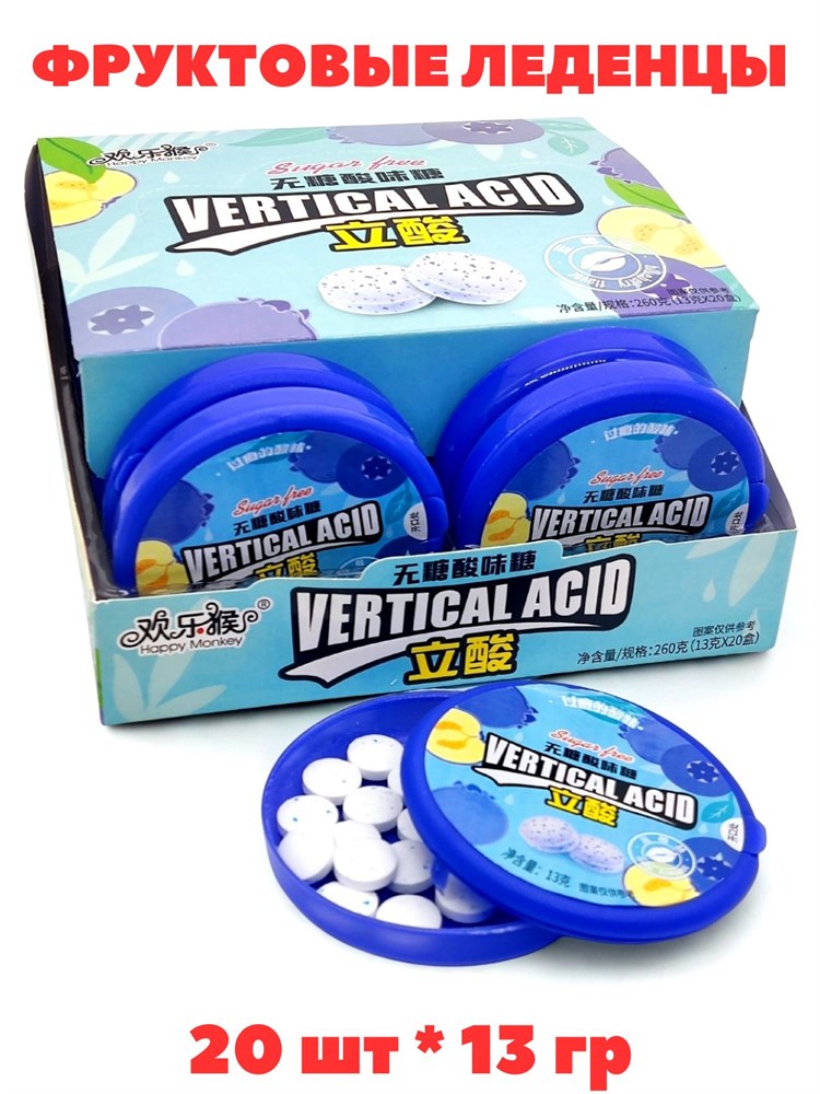 Кислые фруктовые леденцы Happy monkey Черника (1105) 13 гр*1 кор х 15 бл х 20 шт
