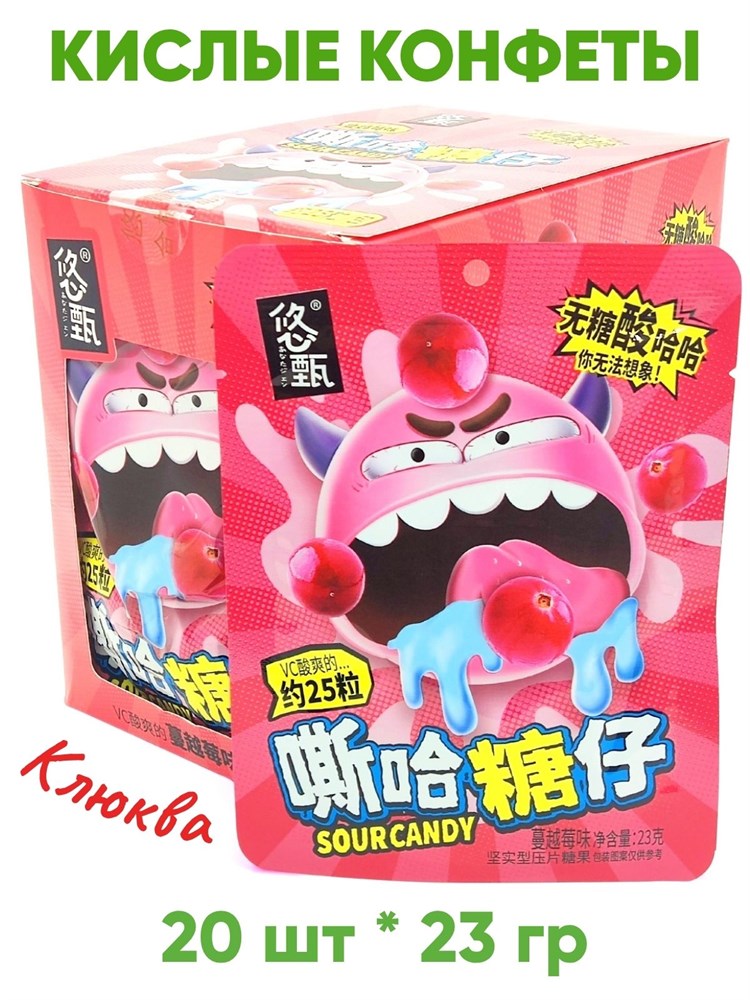 Кислые конфеты Смайлики VC Клюква (81781) 23 гр*1 кор х 12 бл х 20 шт