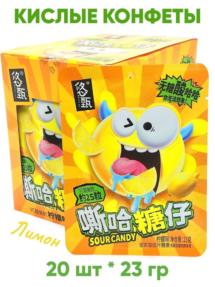 Кислые конфеты Смайлики VC Лимон (81798) 23 гр*1 кор х 12 бл х 20 шт