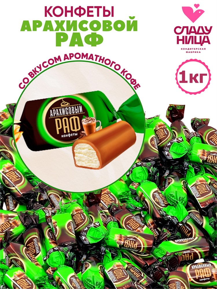 Конфеты Арахисовый раф с начинкой 1 кг в мягкой карамели 1кор х 5 пак*1 шт