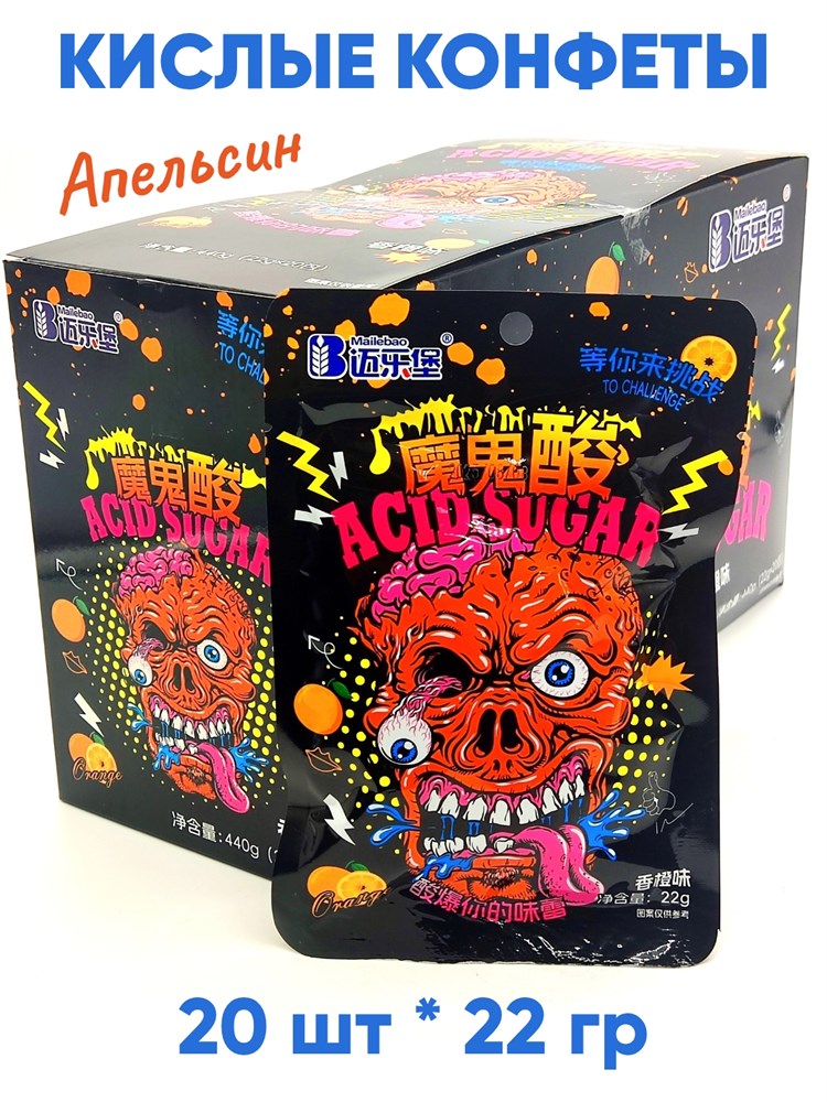 Конфеты кислые Зомби Апельсин Mailebao (9786) 22 гр*1 кор х 12 бл х 20 шт