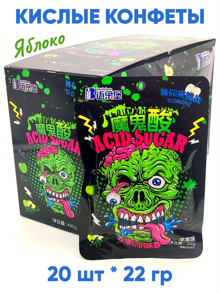 Конфеты кислые Зомби Яблоко Mailebao (9809) 22 гр*1 кор х 12 бл х 20 шт