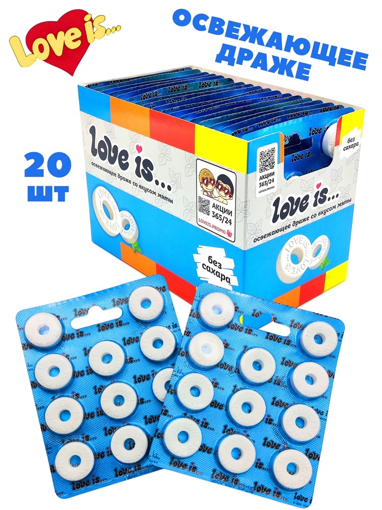 Конфеты освежающие Love is ЛОВИС вкус Мяты в форме кольца в блистере (70958) 16,5 гр*20 бл*18 шт