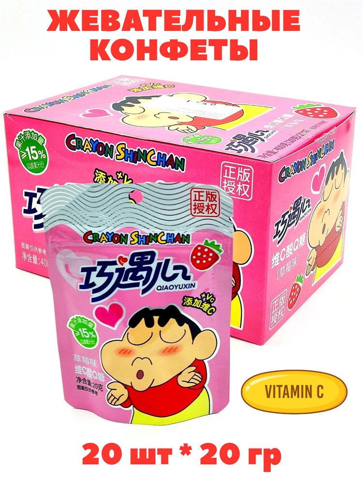 Конфеты жевательные с витаминои С Qiaoyuxin Клубника (0595) 20 гр*1 кор х 12 бл х 20 шт