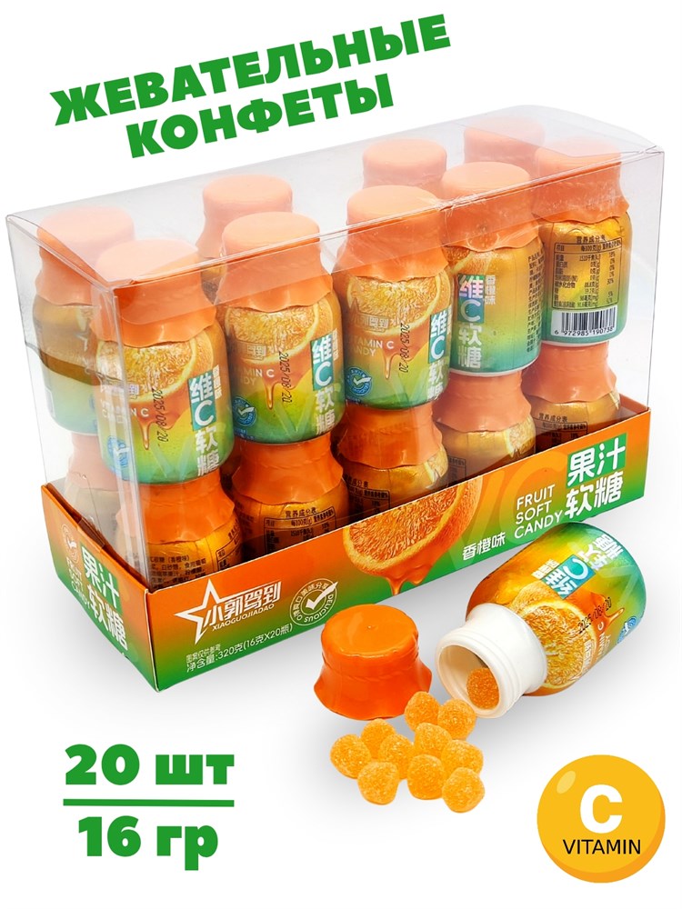 Конфеты жевательные с витамином С в баночке Xiaoguojiadao Апельсин (90745) 16 гр*1 кор 12 бл х 20 шт
