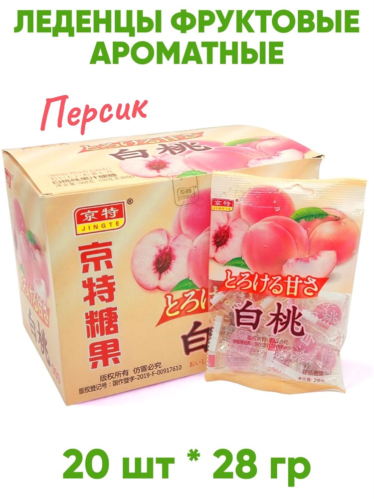 Леденцы фруктовые ароматные JINGTE Персик (1985) 28 гр*1 кор х 12 бл х 20 шт