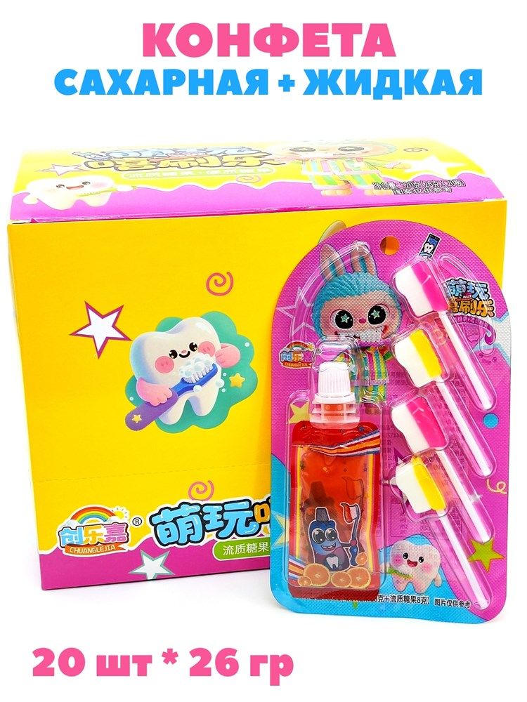 Леденцы на блистере Зубная щетка с жидкой конфетой Chuanglejia (21655) 26 гр*1 кор х 12 бл х 20 шт