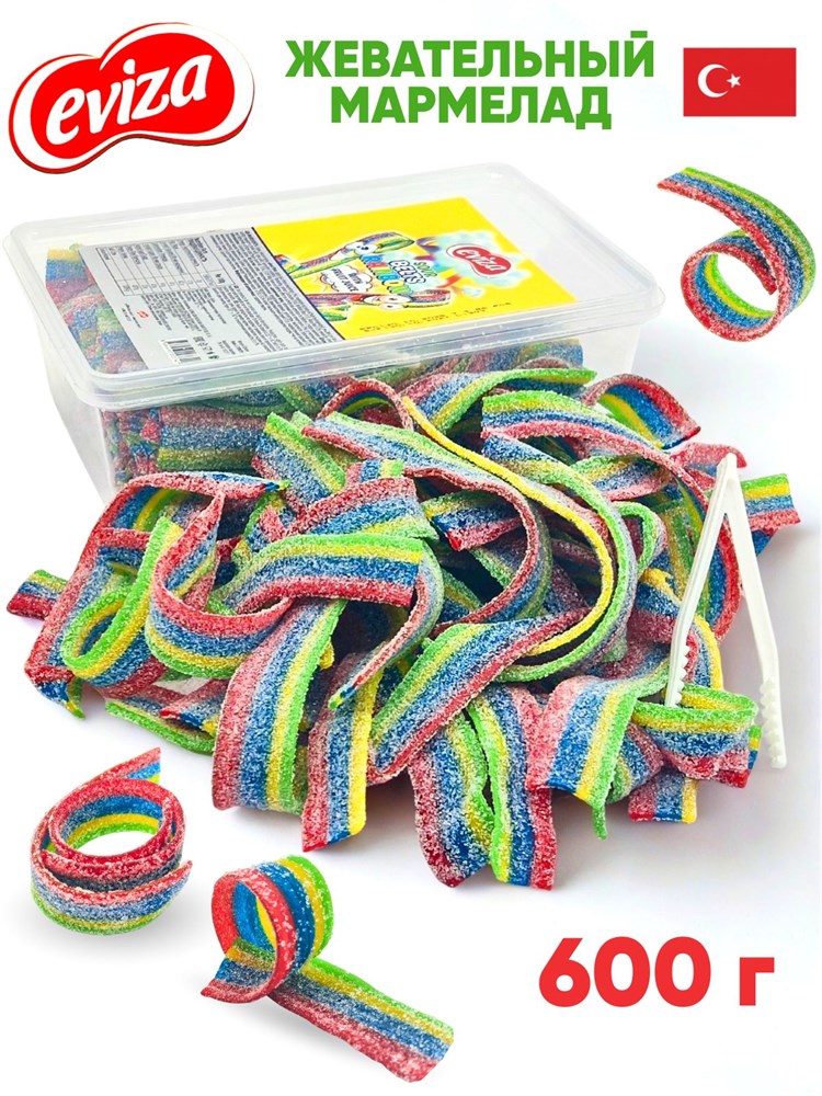 Мармелад EVIZA Кислые ленты с посыпкой (Радуга) (EVIZA3742) 600 гр*1 кор х 12 контейнеров*1 шт