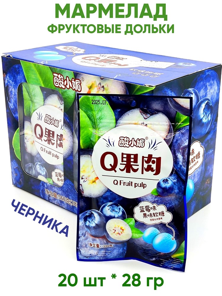 Мармелад Фруктовые дольки Q Черника (41137) 28 гр*1 кор х 12 бл х 20 шт