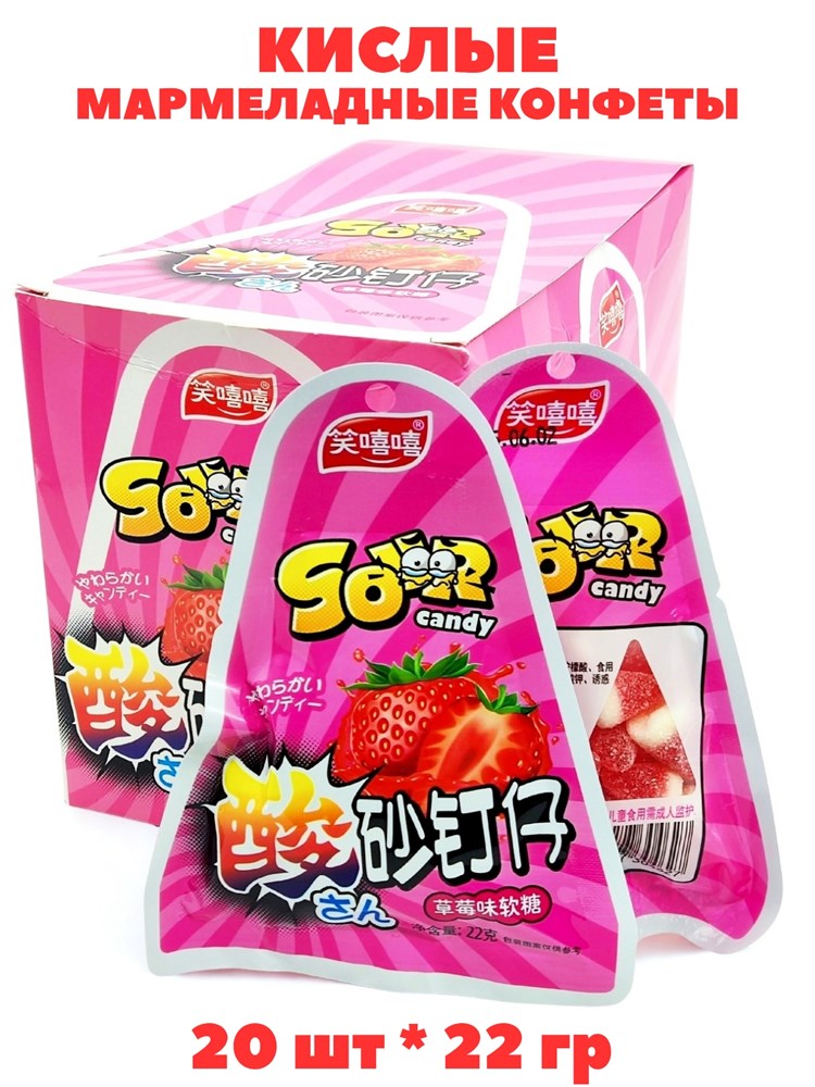 Мармеладные кислые конфеты со вкусом Клубники (41304) 22 гр*1 кор х 12 бл х 20 шт