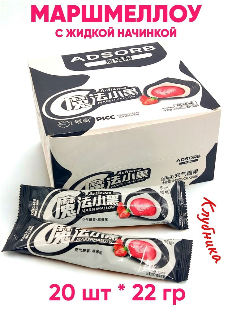 Маршмеллоу с жидкой начинкой Клубника Adsorb (1419) 22 гр*1 кор х 12 бл х 20 шт
