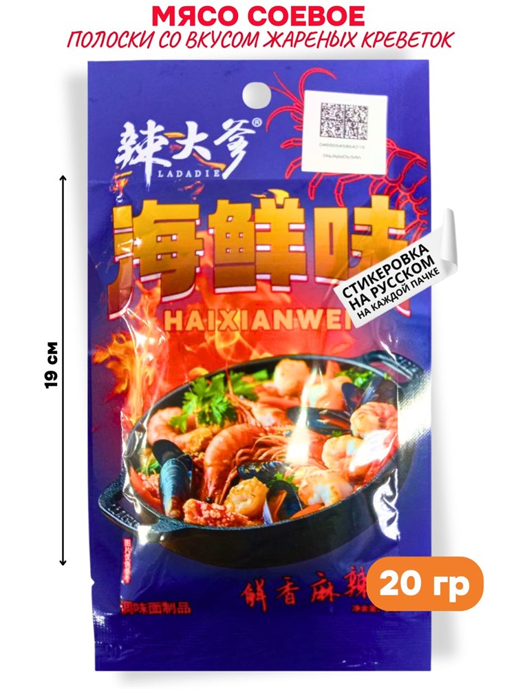 Мясо соевое со вкусом жареных Креветок LADADIE (50370) 20 гр*1 кор х 20 упак х 30 шт