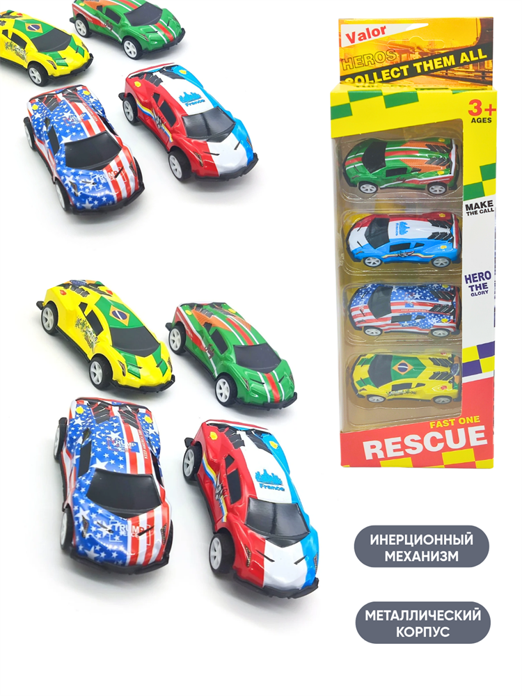 Набор машин Гонки (4 шт) в коробке 10 х 29 см 890-86A