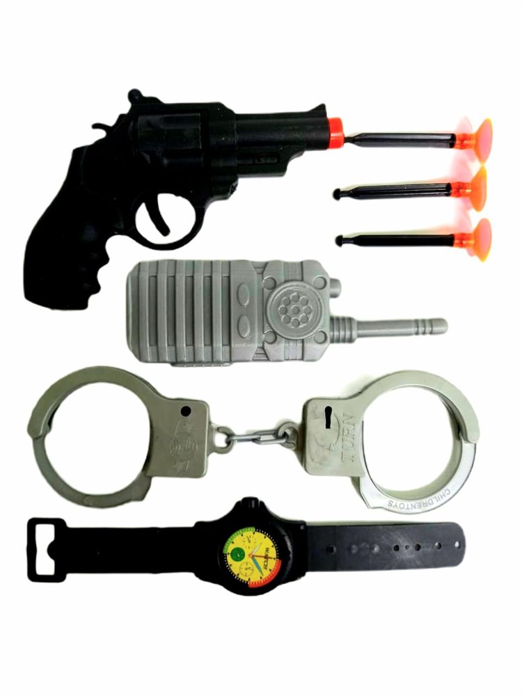 Набор Полицейского (револьвер, наручники, часы, 3 пули на присосках, рации) в пакете 15 х 23 см 002