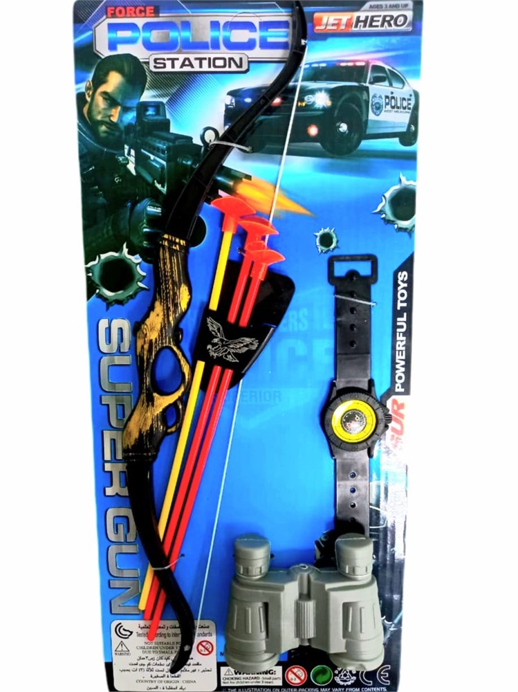 Набор полицеского на листе (лук со стрелами, бинокль, часы) 17 х 38 см 23-1