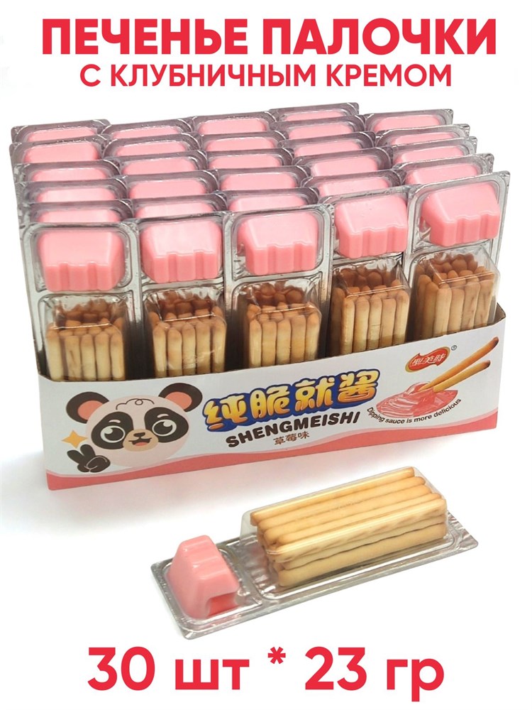 Печенье палочки с Клубничным кремом Shengmeshi (61722) 23 гр*1 кор х 8 бл х 30 шт