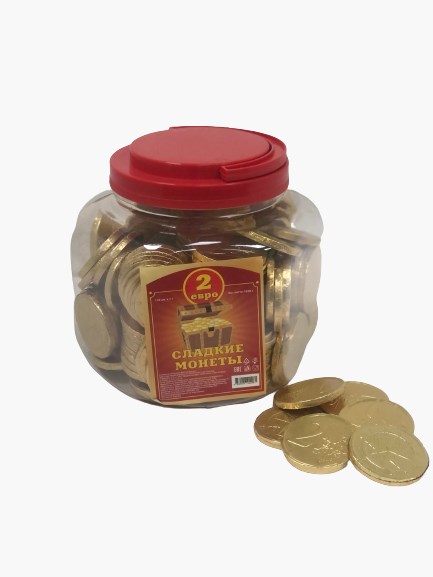 Шоколадные монеты 2 Евро (УТ-1421) 7 гр*6 банок*150 шт