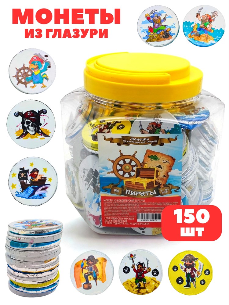 Сладкие монеты Пираты (УТ-2347) 7 гр*6 банок*150 шт