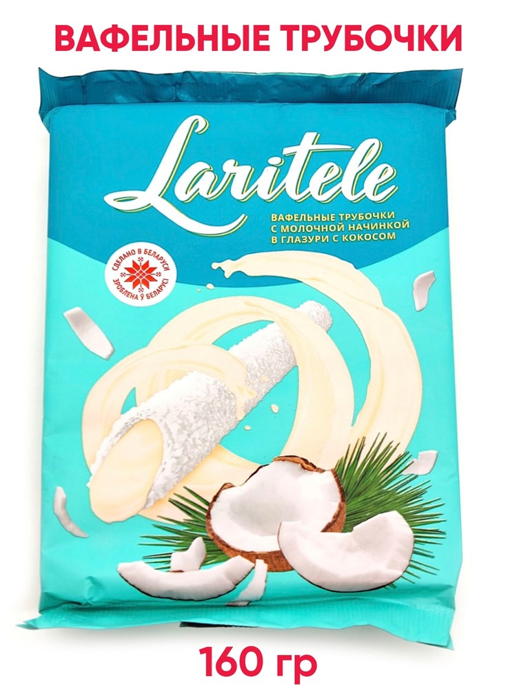 Вафельные трубочки Laritele с молочной начинкой в глазури с кокосом 160 гр*1 кор х 20 шт*1 шт
