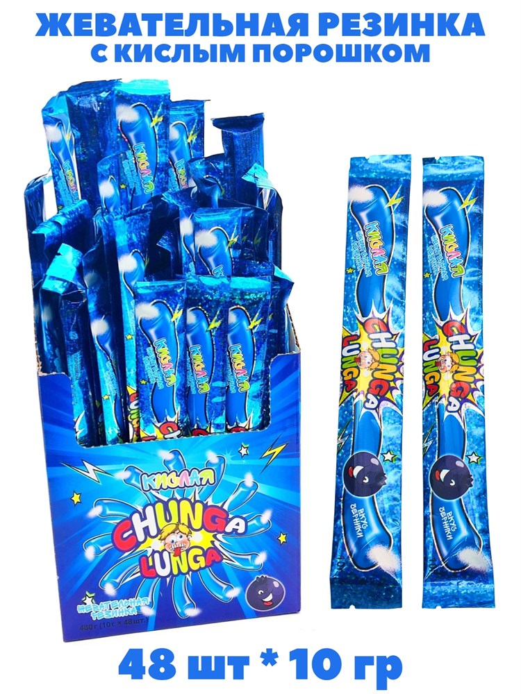 Жевательная резинка Chunga Lunga со вкусом Черники с кислым порошком (70940) 10 гр*12 бл*48 шт