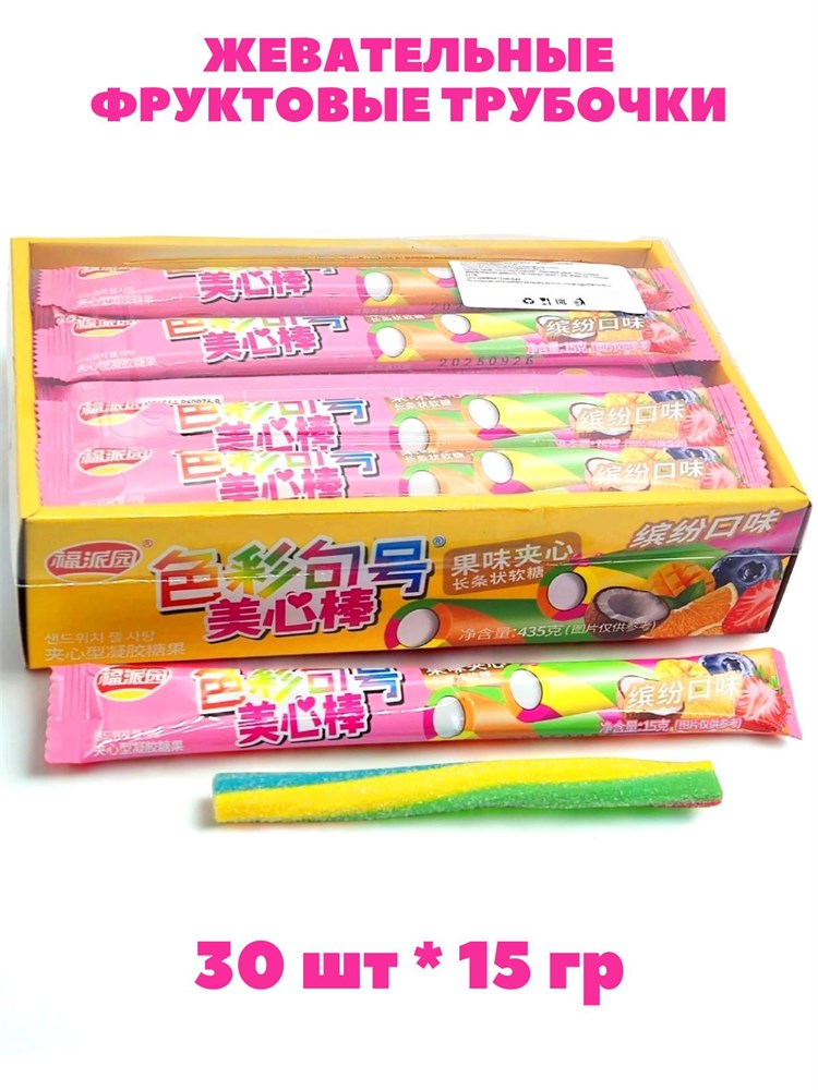 Жевательные Фруктовые трубочки с начинкой цветные (61449) 15 гр*1 кор х 20 бл х 30 шт