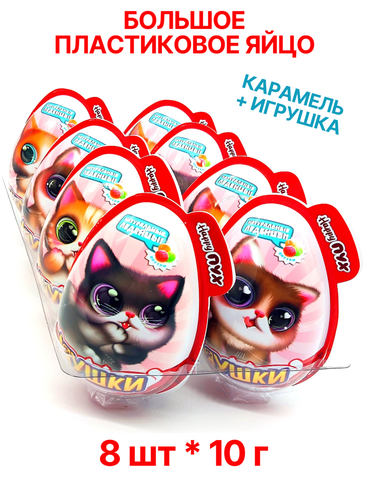 Большое пластиковое яйцо Мяушки монпасье карамель с игрушкой (Danli) (41748) 10 гр*6 бл*8 шт