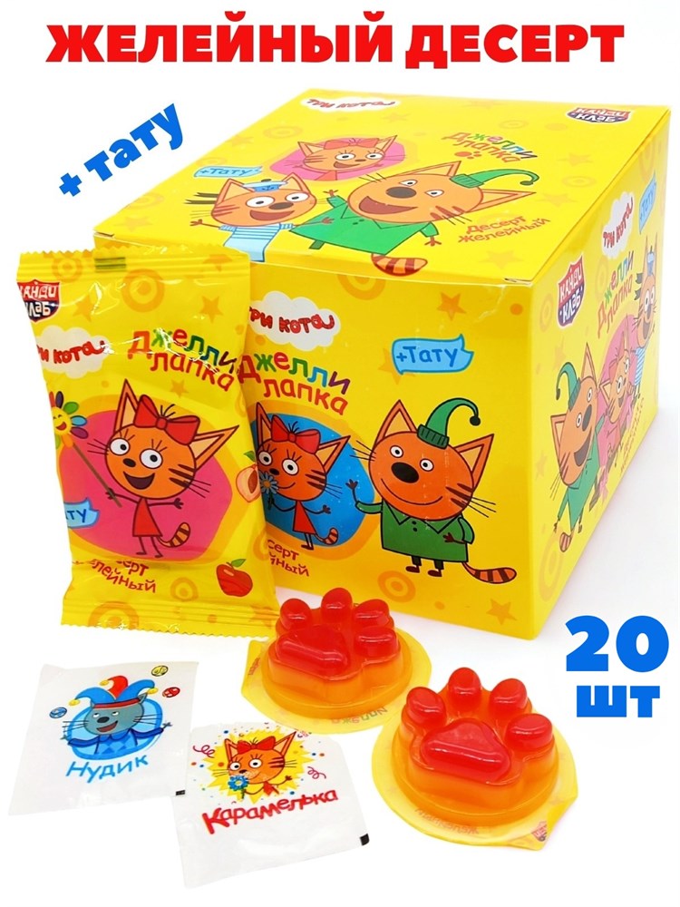 Десерт желейный Джелли лапка Три кота с татуировкой (Канди Клаб) (JEL120) 25 гр*12 бл*20 шт
