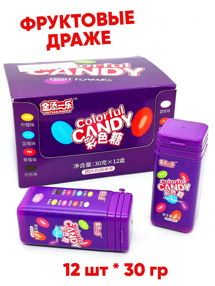 Драже фруктовые в тубе Jintian Happy (4429) 30 гр*1 кор х 12 бл х 12 шт