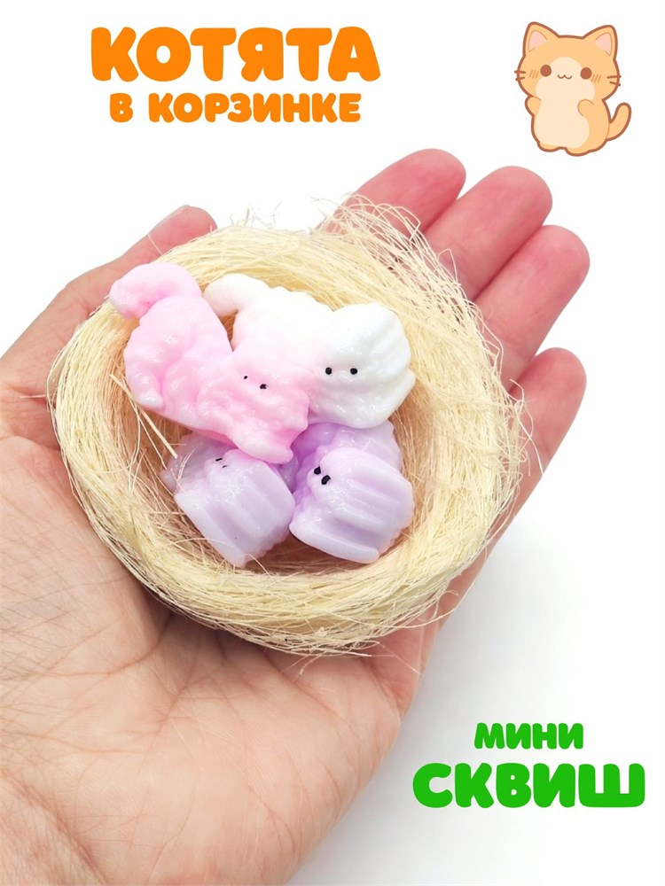 Игрушка - антистресс Котята в корзине в пакете 8 см 1 блок х 12 шт 00-6686