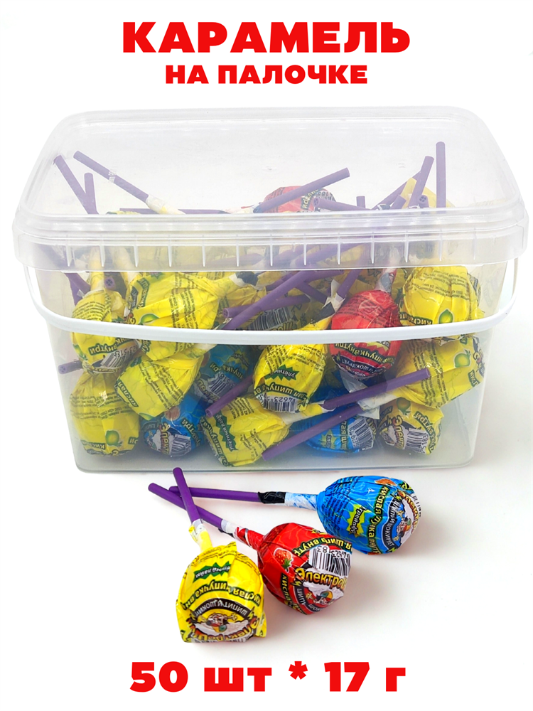 Карамель леденцовая на палочке ЭЛЕКТРОШОК фруктовое ассорти (CL-305) 17 гр*12 кон*50 шт