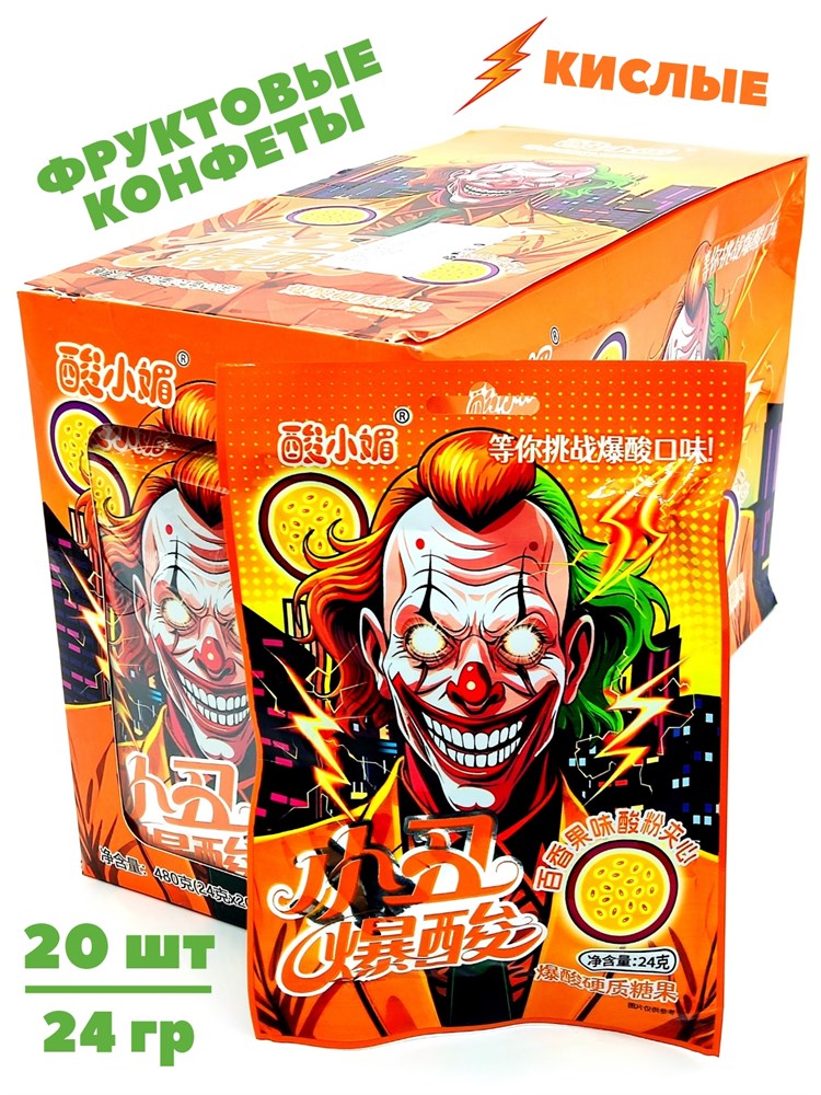 Кислые фруктовые конфеты Джокер Маракуйя (51335) 24 гр*1 кор х 12 бл х 20 шт