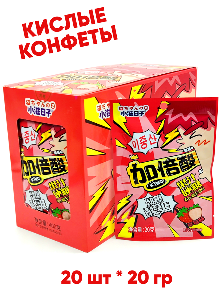 Кислые фруктовые конфеты King Клубника (41793) 20 гр*1 кор х 12 бл х 20 шт