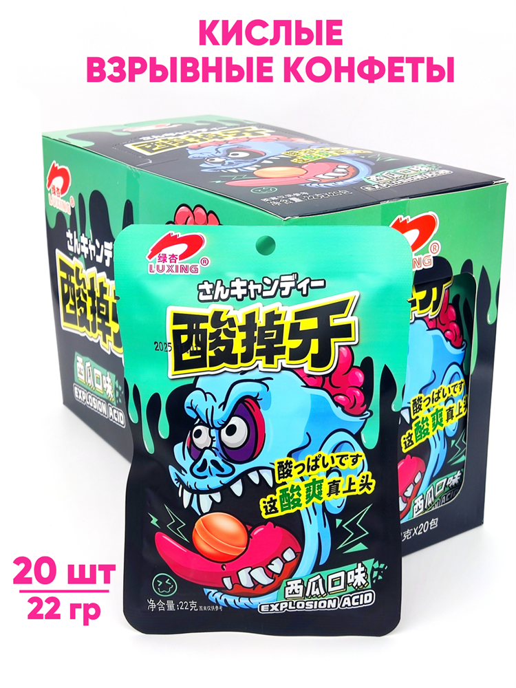 Кислые взрывные конфеты Зомби Luxing Арбуз (1944) 22 гр*1 кор х 12 бл х 20 шт