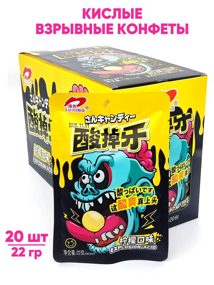 Кислые взрывные конфеты Зомби Luxing Лимон (1913) 22 гр*1 кор х 12 бл х 20 шт