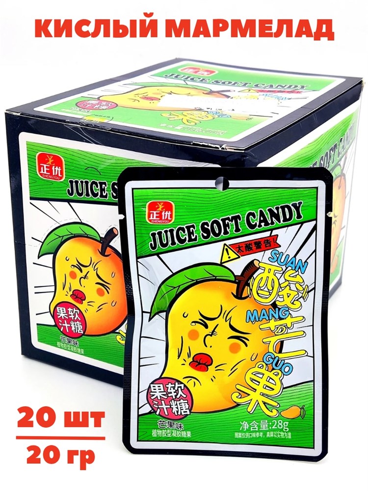 Кислый фруктовый мармелад Zhengyou (1265) 20 гр*1 кор х 12 бл х 20 шт