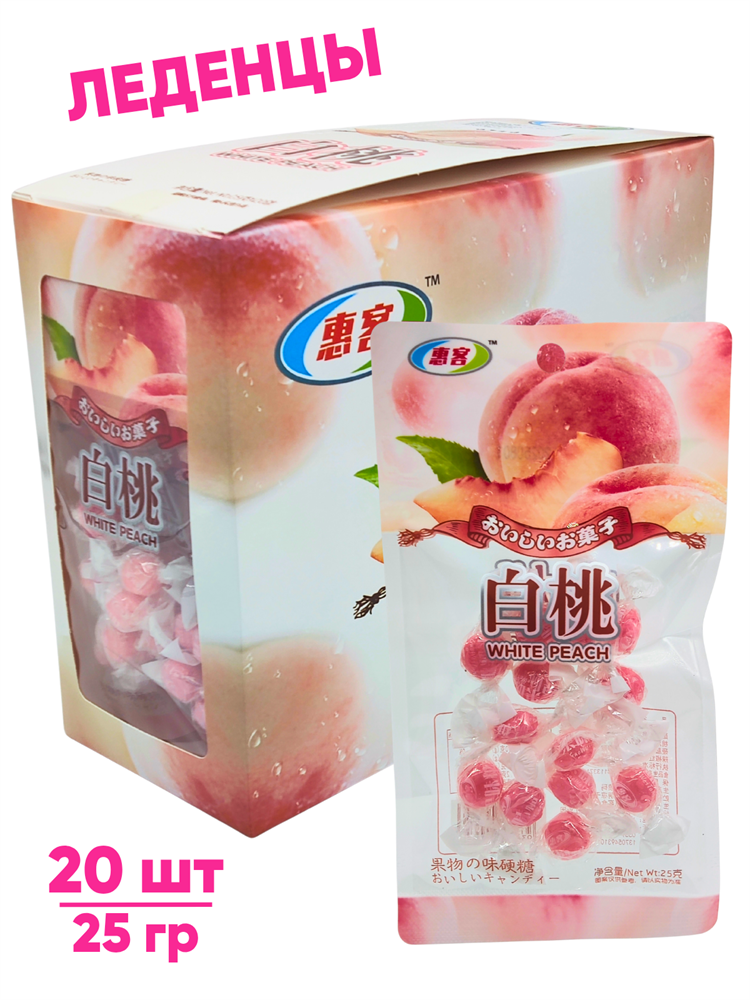 Конфеты леденцы со вкусом белого Персика (00663) 25 гр*1 кор х 12 бл х 20 шт