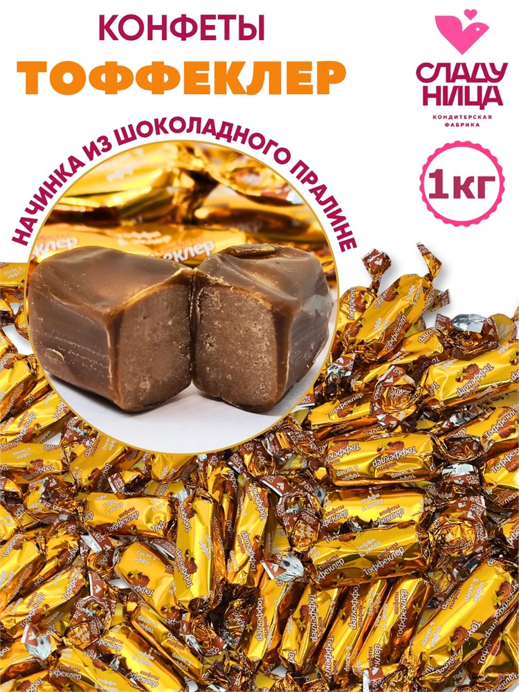 Конфеты Тоффеклер 1 кг шоколадное пралине в мягкой карамели ( шт/ гр) 1 кор х 5 пак