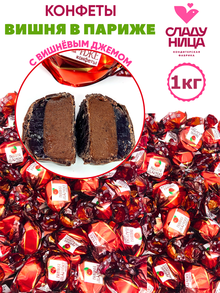 Конфеты Вишня в Париже 1 кг шок. суфле с вишневым джемом в шоколаде (55 шт/18,5 гр) 1 кор х 5 пак