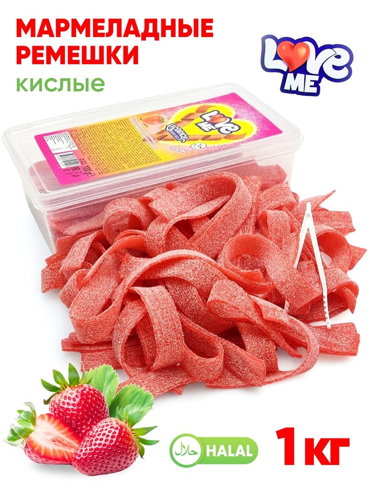 Мармелад Love Me Кислые ремешки (Клубника) Halal (AF0002/1907) 1 кг*1 кор х 12 контейнеров*1 шт